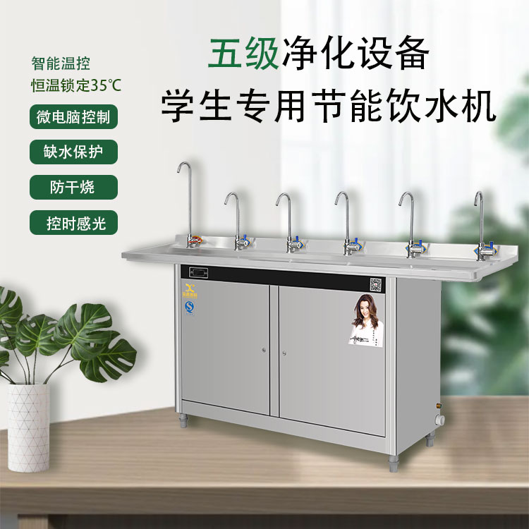 恒温锁定35℃,即无烫伤危险,又解决了学生下课时间紧,集中接水,热水喝不到口的痛点。