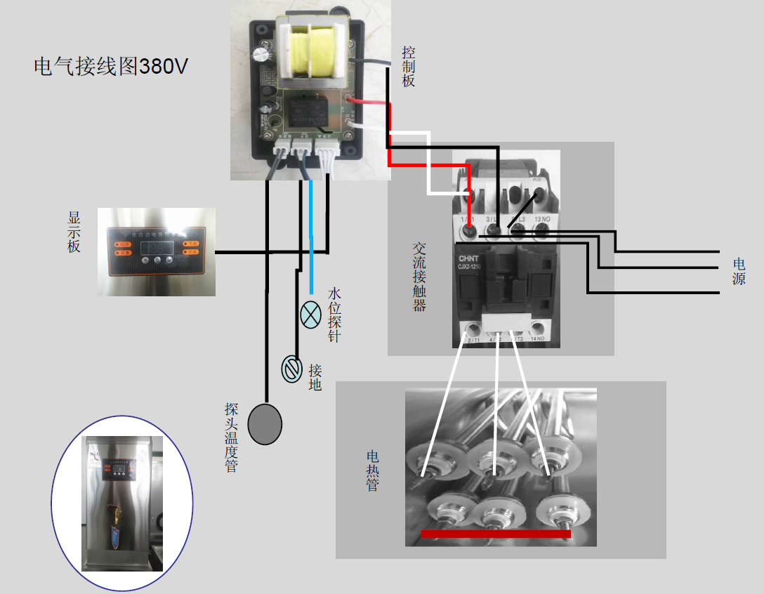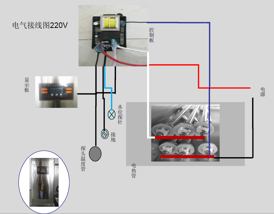 由于本开水器具有缺水断电保护功能,所以当水源中断,箱内水位过低时,电热管会被切断电源停止工作,这可以保护电热管而非故障。