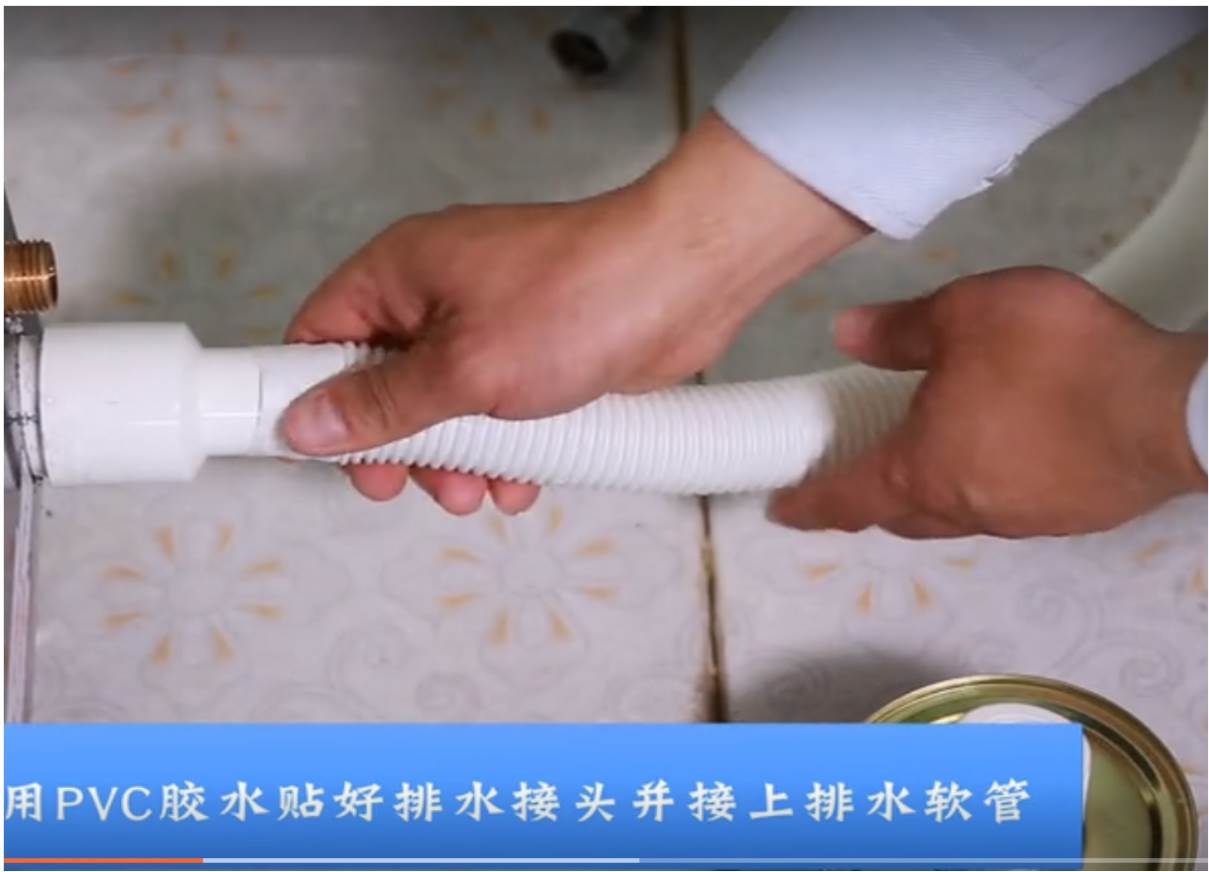 1、用PVC胶水贴好排水接头并接上排水软管