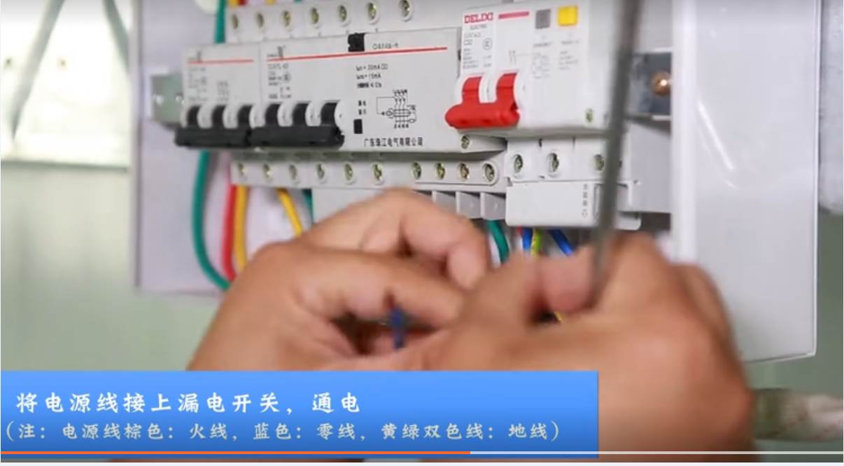 2、将电源线接上漏电开关