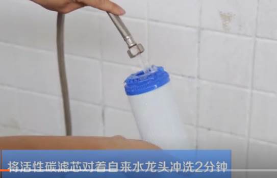 2、自来水冲洗滤芯2分钟