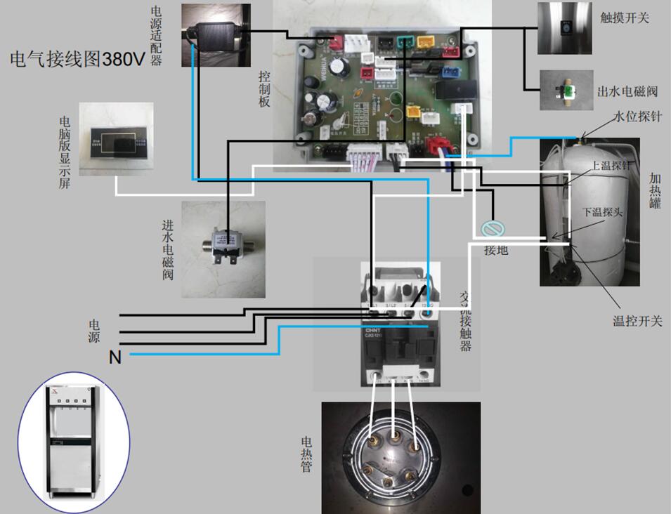 9、将自来水管与开水器的进水口接好