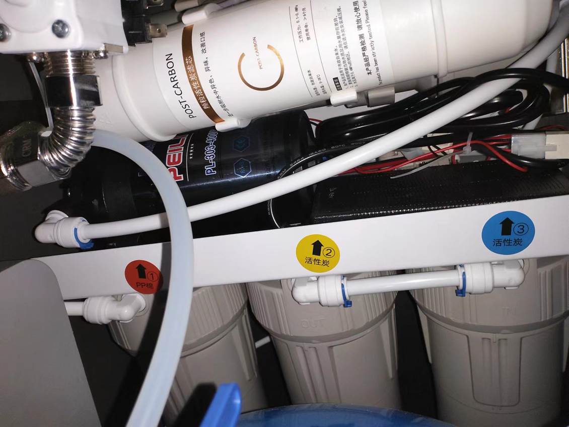 2.①不进水不制水,在显示屏显示进水期间,首先保证原水有水且压力保证在0.2MPA以上(初次进水时记得把出水开关打开排除箱内气体),RO机泵在工作状态,用万用表直流DC档测进水电磁阀线圈有没有电压12V。如果有电压,检查电磁阀是否卡住,电磁阀插头是否松动或堵塞请检查或更换。再用万用表AC档测量RO机电源进线有无220V电压,再测量电源模块出线有无DC24V。如果电压正常请检查RO泵维修或更换。过滤器定期更换滤芯。