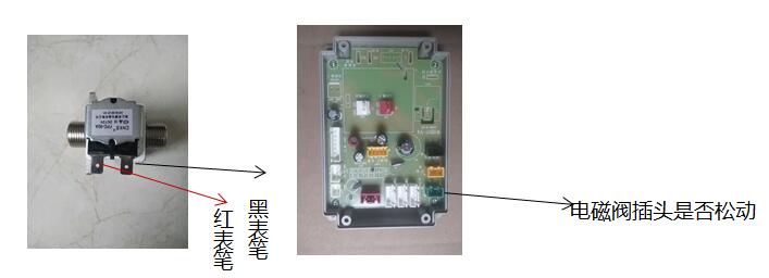 2.不进水,在显示屏显示进水期间,首先保证原水有水且压力保证在0.2MPA以上(初次进水时记得把出水开关打开排除箱内气体),用万用表直流DC档测进水电磁阀线圈有没有电压12V。如果有电压,检查电磁阀是否卡住,堵塞或插头松动请检查或更换。